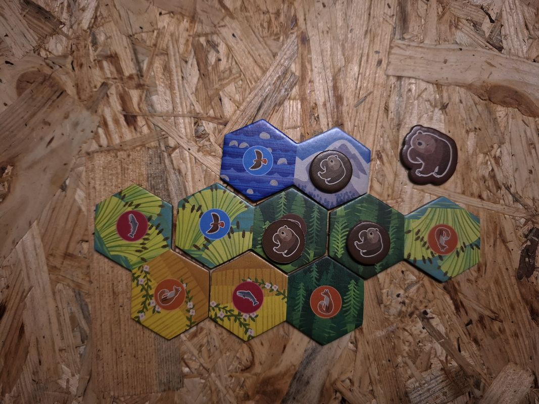 Znaczniki zwierząt układacie na płytkach siedlisk, a żeton obserwacji dodajecie do swojej panoramy.
