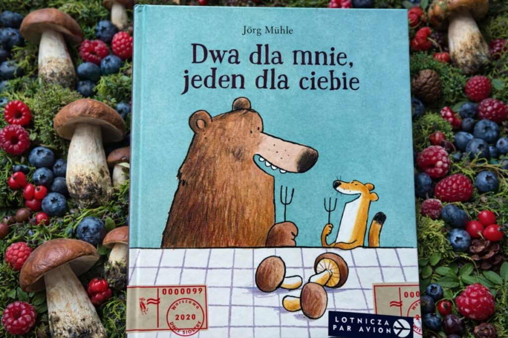 Niemiecki autor Jörg Mühle znany jest nam z genialnej serii o króliczku, dlatego bez wahania sięgnęliśmy po jego kolejną książkę o perypetiach zabawnych zwierząt – niedźwiedzia i łasicy. Już wcześniej przekonaliśmy się, że potrafi w prosty, a jednocześnie niezwykle trafny sposób opowiadać o dziecięcych emocjach i codziennych sytuacjach – i tutaj absolutnie to potwierdza. Już sam tytuł „Dwa dla mnie, jeden dla ciebie” jasno sugeruje, czego możemy się spodziewać… i rzeczywiście – nie zawiedziemy się. Co ciekawe, nie jest to jednak książka, która daje gotowe rozwiązania czy moralizuje. Wręcz przeciwnie – autor zostawia przestrzeń do interpretacji i rozmowy, co czyni ją wyjątkowo wartościową.