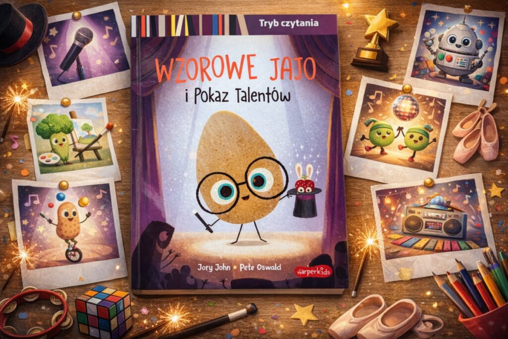Dodatkowo historia Wzorowego Jaja angażuje emocjonalnie – dziecko może się z nim utożsamić, przeżywać jego stres i radość, a to sprawia, że czytanie staje się nie tylko nauką, ale przede wszystkim przyjemnością. Takie pozytywne doświadczenia budują w dziecku chęć dalszego czytania i rozwijania tej umiejętności.