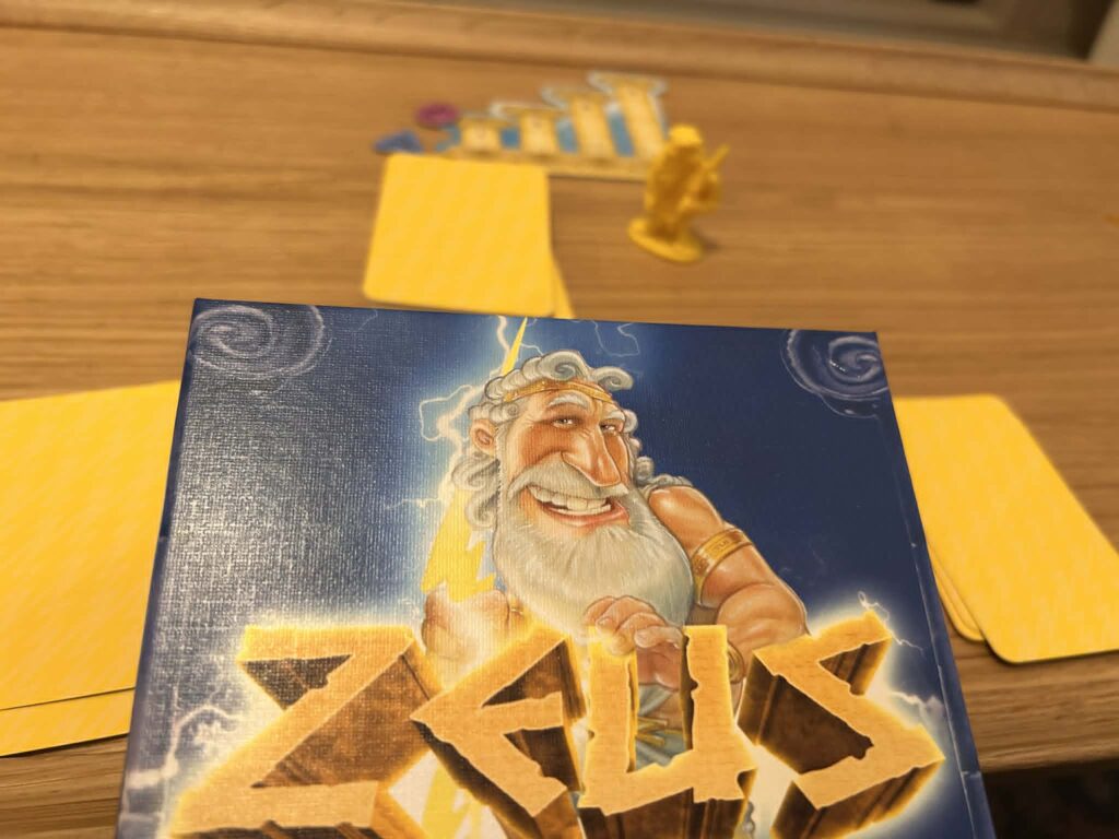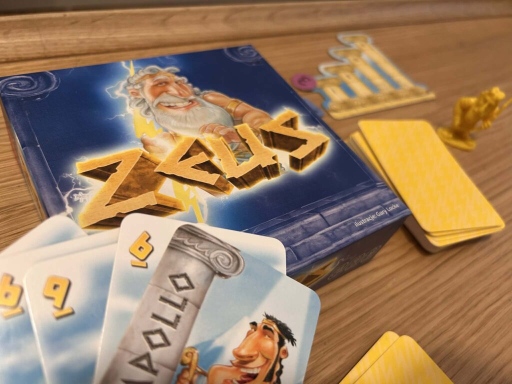 „Zeus” to lekka gra karciana, w której wspinamy się na Olimp i próbujemy zdobyć… figurkę Zeusa. A właściwie utrzymać ją u siebie w idealnym momencie. Brzmi banalnie, ale w praktyce oznacza ciągłe przepychanki, szybkie decyzje i trochę kombinowania.