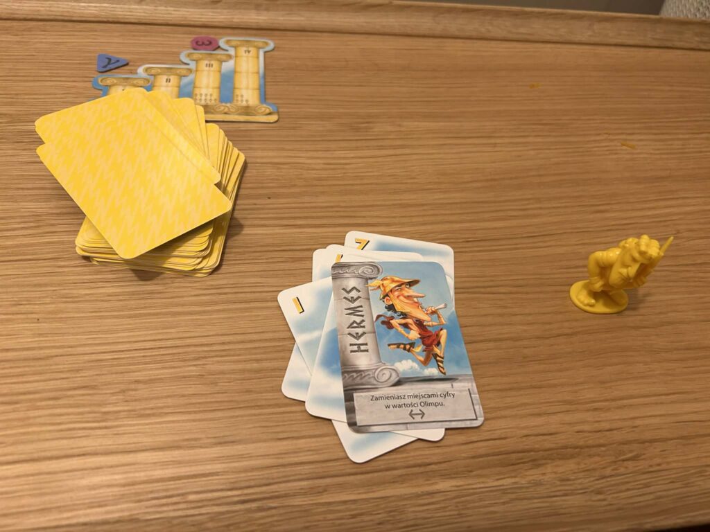 I właśnie to obserwowanie jest kluczowe. Bo nagle okazuje się, że nie chodzi tylko o to, co mam na ręce. To zdecydowanie bardziej dynamiczne i „towarzyskie” doświadczenie niż spokojne układanie strategii. Więcej tu reakcji, śmiechu i lekkiej rywalizacji. W bonusie dostajecie ćwiczenie na liczenie w pamięci – a dokładnie dodawanie. Co karta, zmienia się wartość naszego Olimpu.