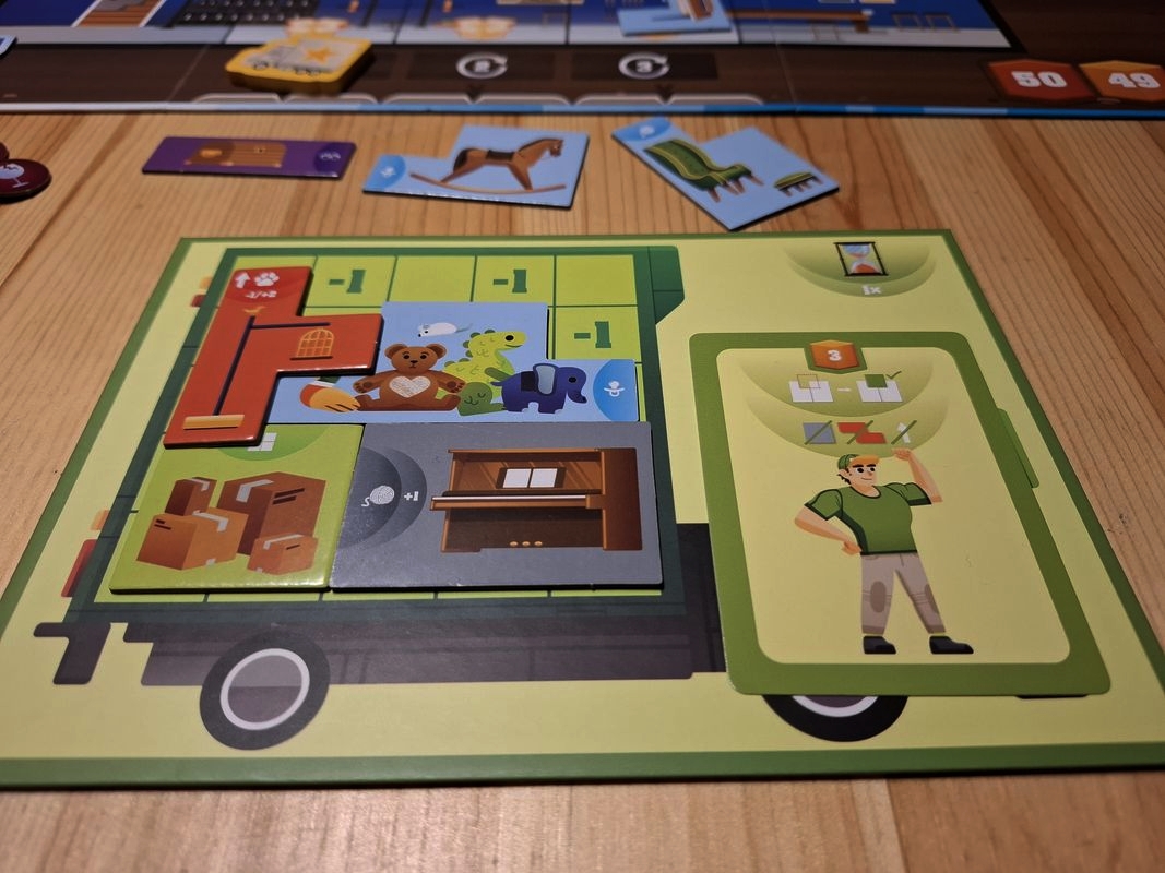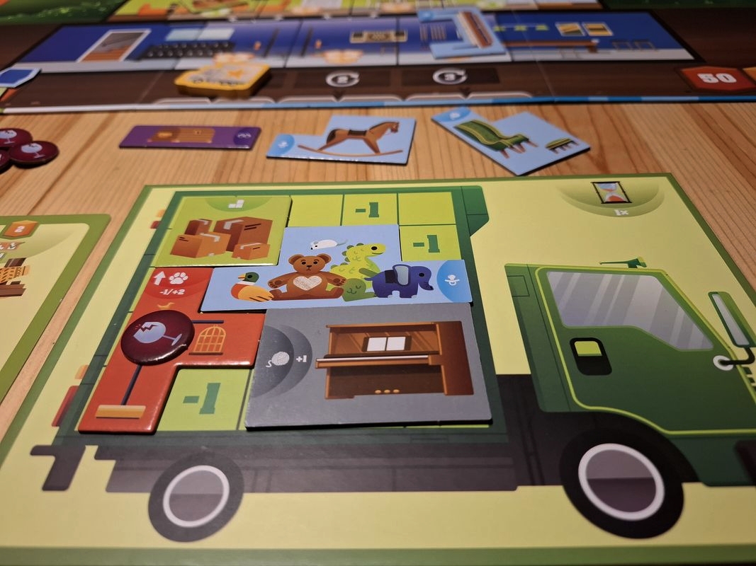 Każdy z graczy dysponuje własną ciężarówką, którą w trakcie gry stopniowo zapełnia. Jak to bywa w prawdziwej przeprowadzce, szybko okazuje się, że czeka nas jedno wielkie tetrisowe wyzwanie – jak ułożyć wszystko tak, by zmieścić jak najwięcej rzeczy i nie dopuścić do pustych przebiegów.