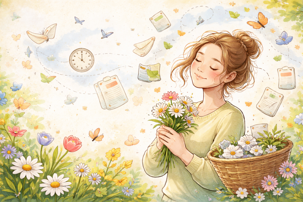 Wiosna przypomina, że nie wszystko musi być produktywne. Spacer bez celu, kawa na słońcu, chwila ciszy. Małe rzeczy, które nie mają żadnego „efektu”, a jednak robią dużo. I które zimą często odkładamy, bo „nie ma czasu” albo zwyczajnie mamy lenia.