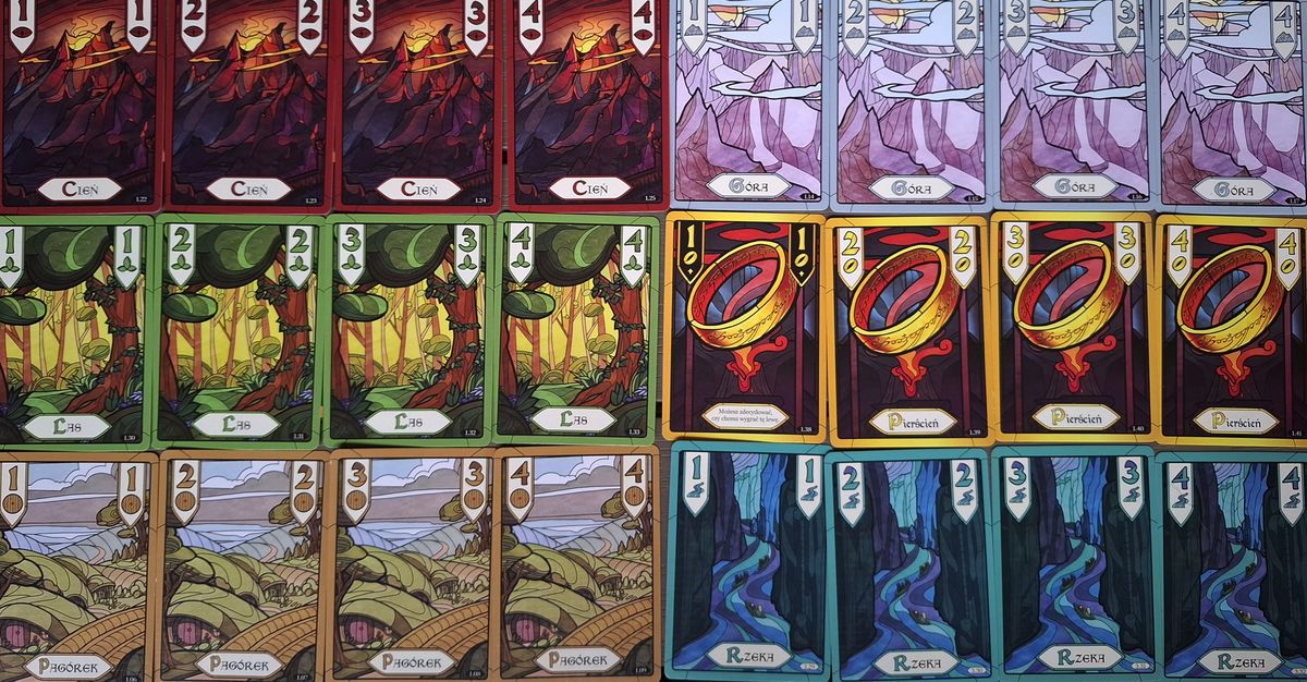 - Osoba, która wylosowała kartę Pierścienia o wartości „1”, wybiera kartę Froda i bierze żeton pierścienia.
